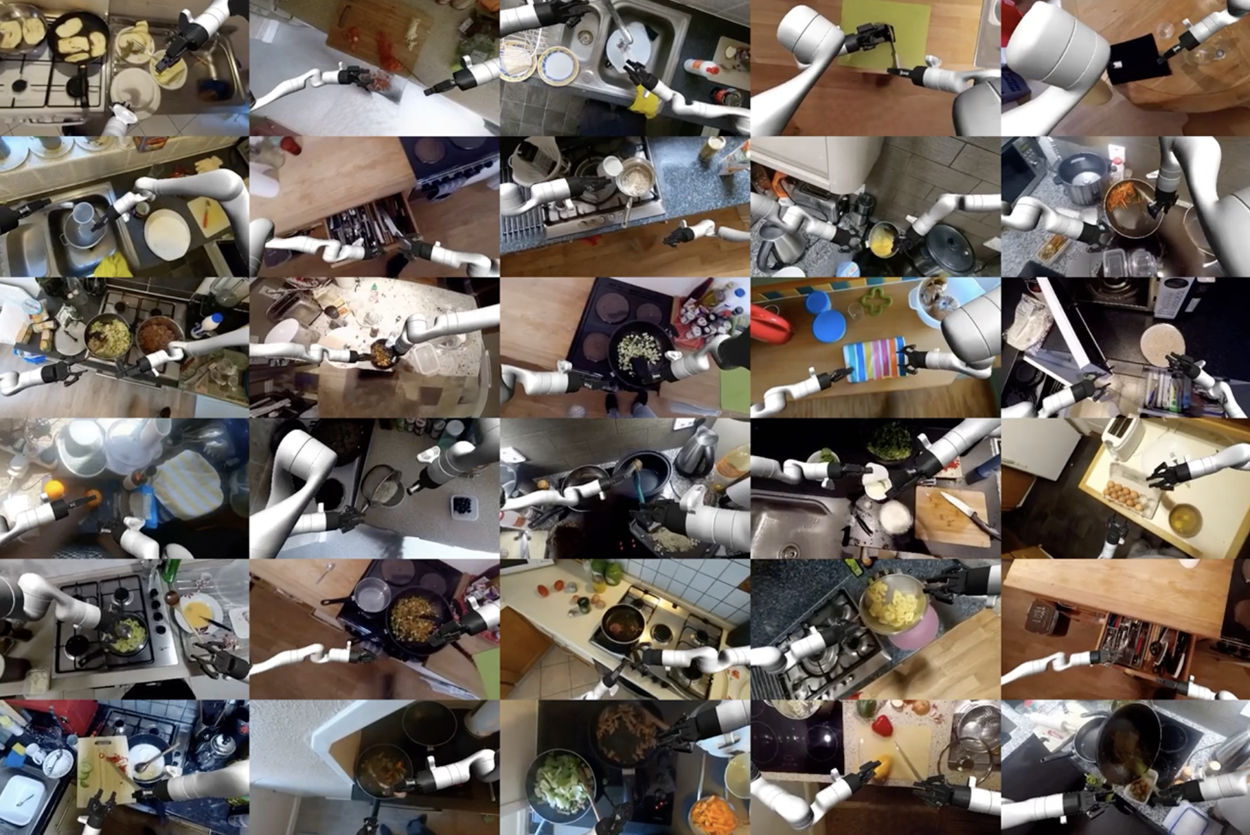 Masqueradeは、人間の手の動きを推定した上で人物の姿を映像から消去し、代わりにバイマニュアル(二本腕)ロボットを重ね合わせる。この「人間映像のロボット化」によって、日常的な操作動画をそのままロボットの行動データに利用できるようになる。研究チームは、この変換データとわずか50件の実際のロボット実演を組み合わせて調理作業を学習させた結果、未経験の環境でも高い成功率を維持することを確認した。